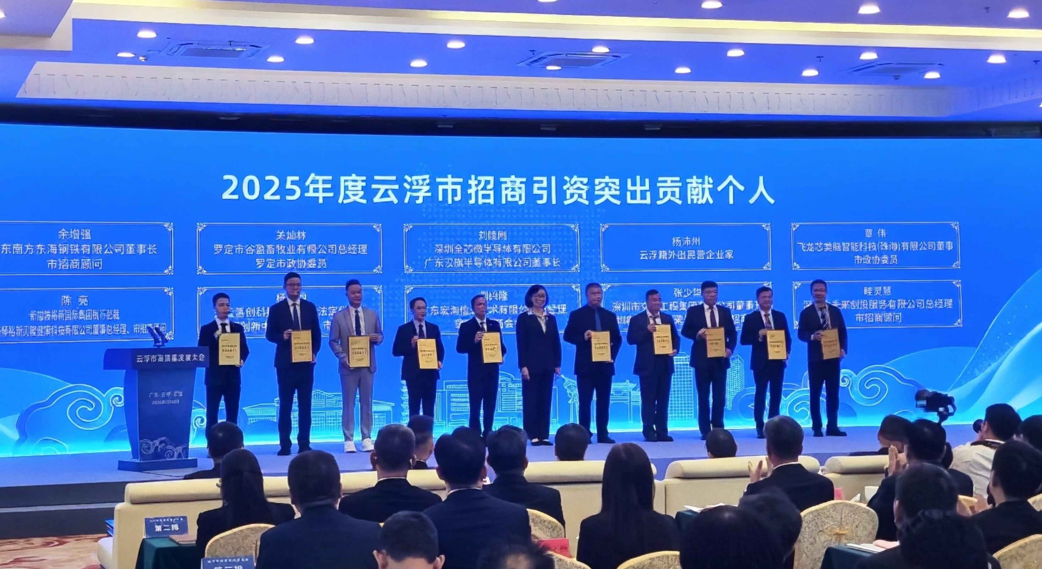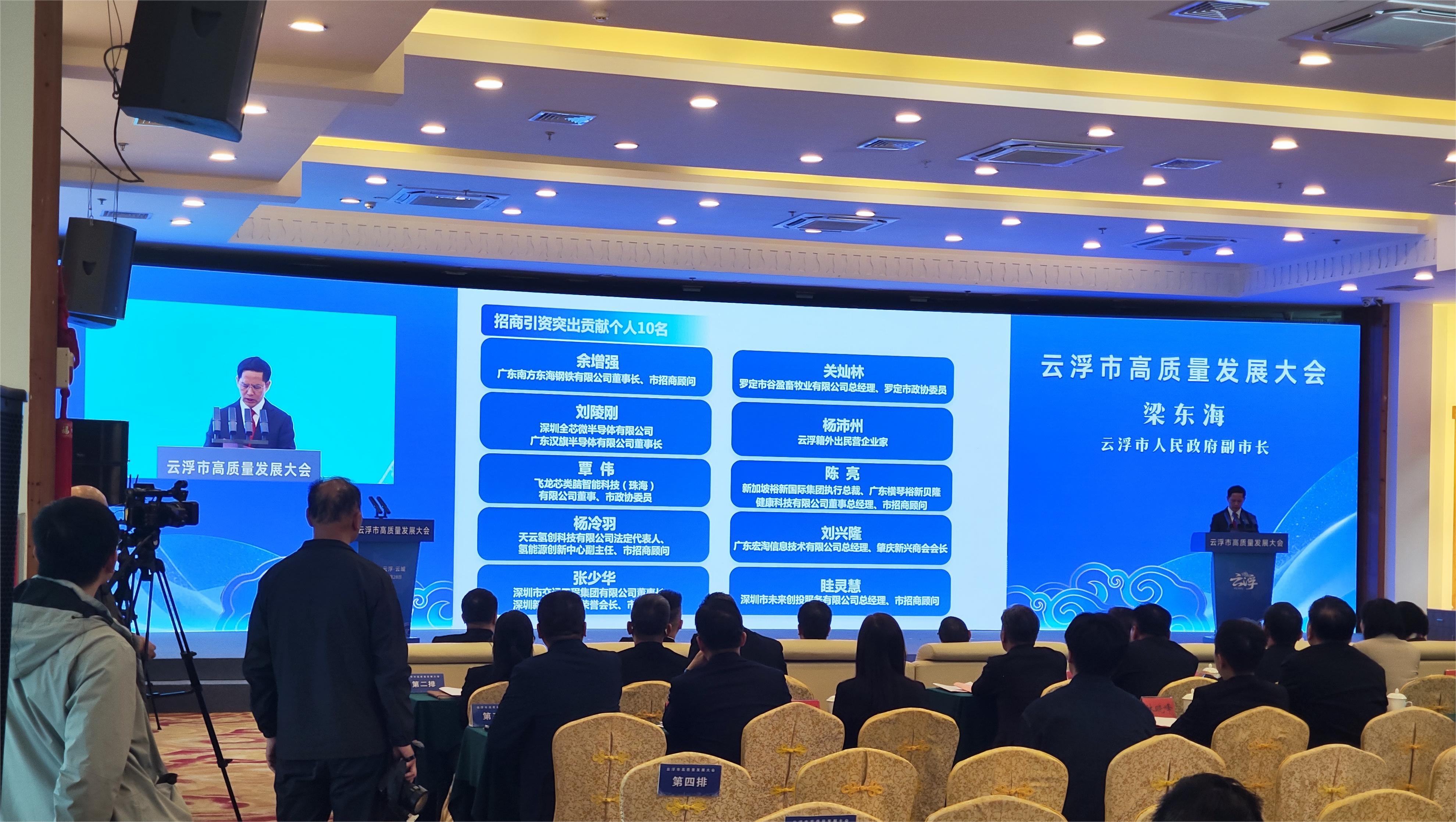 2026年2月28日,雲浮市委、市政府隆重召開雲浮市高質量發展大會,大會期間對在全市招商引資、項目建設、產業發展等工作中作出卓越貢獻的先進個人和集體進行隆重表彰。國際氫能投資協會執行會長楊冷羽憑藉在推動地方產業升級、助力招商引資落地、服務區域經濟發展中的突出成績與責任擔當,被授予2025年度招商引資「突出貢獻個人」榮譽稱號,並現場接受表彰。