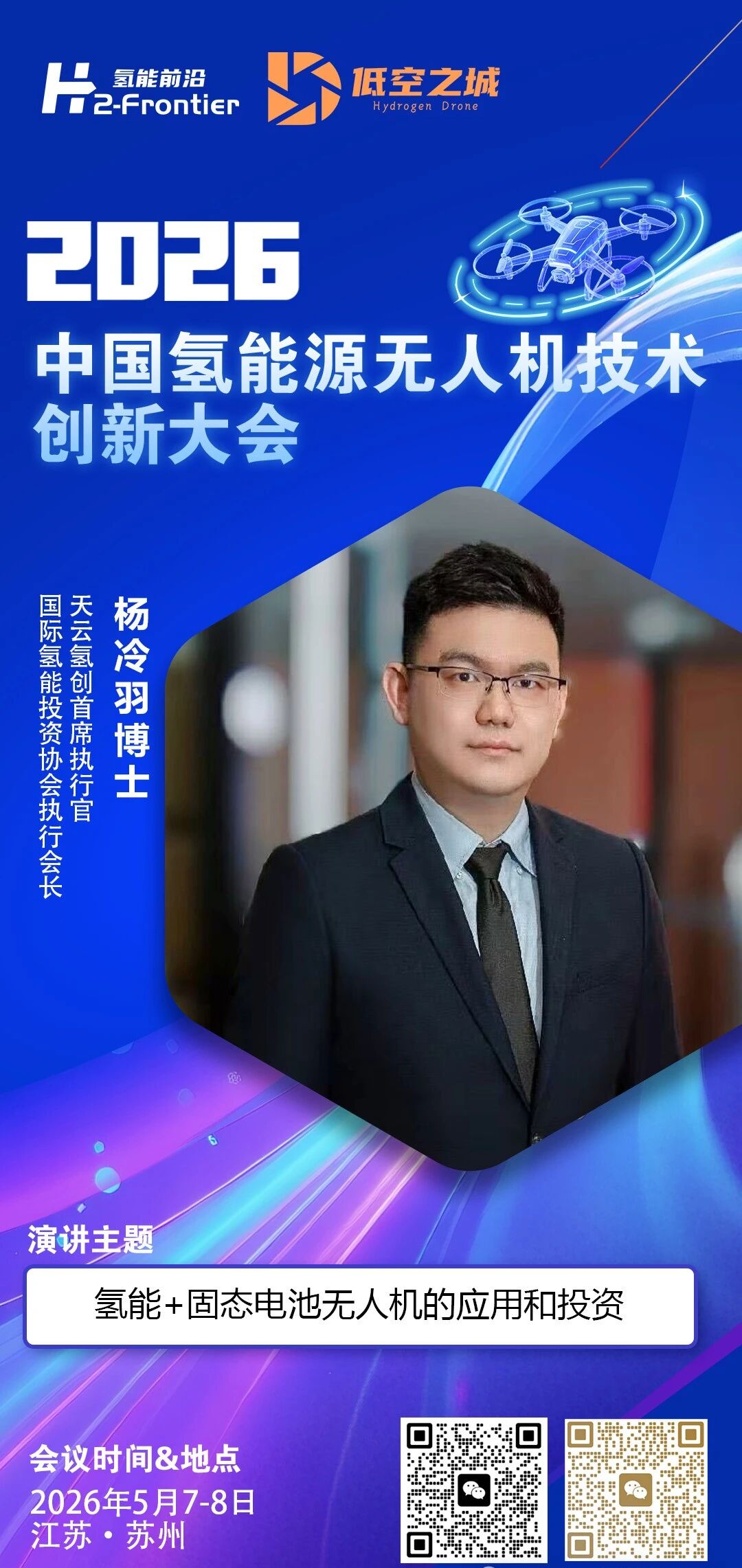 2026 第二屆中國氫能源無人機技術創新大會 5 月 7-8 日在蘇州舉辦,楊冷羽博士將出席併發表主題演講。